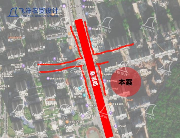 (如上圖所示,項(xiàng)目位于寒溪陸路十字路口)